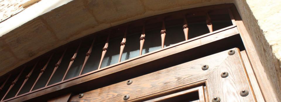Puerta exterior doble madera medio arco y rejas